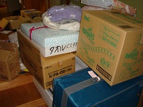 | 10月24日(月) | 議員団会議 控え室で。 扶川県議は26日から、私は27日から南相馬市へ向けて出発します。毛布、米、日用品などが沢山寄せられています。荷物の分担や現地での活動などについて打ち合わせしました。 午後は、県下の党議員などが集合して、議員定数問題について学習会を行いました。 支援物資次々と 夜、サークルのお仲間が、毛布を持って練習に参加してくれました。 これまでにも、女性団体の活動をされている方や個人から次々と物資が届いています。 また、家に帰ると、「夜遅くてすみませんが…」と、別の方がわざわざ物資や毛布を届けてくださいました。 「たつたさんに預けたら、直接被災者の方に届けてくれるから。」と、持って来てくださったのです。 東北は寒いだろうからと、クリーニングした冬服を沢山いただきました。本当に有り難いことです。 ご協力くださっている皆様に心からお礼申し上げます。 これらを届けて、しっかりと現地のご要望も聞いて来たいと思っています。 現在、我が家はボランティア配送センターのよう。足の踏み場もない状態です。 毛布を圧縮袋に入れる作業、最初は掃除機で吸うとシュッと縮むので面白がっていたのですが、何十枚もあるからだんだん指や腕が痛くなってきました。うまく塞いでいないとまた膨らんでしまいます。これも体力が必要です。 |