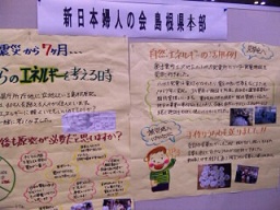 | 10月14(金)〜15(土)雨 日本女性会議 in 松江へ 私が所属している新日本婦人の会阿南班も加入団体となっている阿南市女性協議会は、今年も日本女性会議に参加し、私もお誘いいただいて行ってきました。 今年は島根県松江市で開催されました。 ![]() 大根島の豪華なボタンがあちこちに。 新婦人の展示ブースを見つけました。 一日目は防災についての分科会「災害犠牲者ゼロをめざして」。 「津波てんでんこ」の石巻の防災教育について、中央防災会議専門委員や東京電力福島第一原発の事故調査・検証委員会に所属されている片田敏孝先生など多彩なパネリストから貴重なお話を聞くことができました。 二日目の全体会では、登山家の田部井淳子さんの記念講演。女性としてエベレスト世界初登頂を果たしたお話など、溌剌と、参加者に元気パワーを贈って下さいました。 シンポジウム「ジェンダー平等をめざして」も、国際女性の地位協会会長の山下泰子先生や、国連女性の地位委員会日本代表の橋本ヒロ子先生などが、第三次男女共同参画基本計画を、どのように暮らしに活かすのか、現在の日本の女性が置かれている立場と世界を比較してなど目からウロコのお話で、時間があっという間に過ぎてしまいました。 また、アトラクションは伝統芸能「石見神楽」。スサノオノミコトのオロチ退治の場面は、圧巻。何度も会場を拍手で包みました。 ギエッー!火噴いてます〜!! オロチ8匹もいたんです。 |