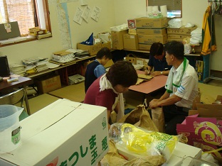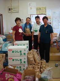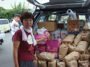 ボランティアセンターに無事到着 朝7時に富山を出発。 途中、放射線量の高い飯館村を通過してきましたが、6月に通った時と比べて、田畑にさらに雑草が生い茂り、一面の荒地の状況に心が痛みました。 ちょうど飯館で燃料がなくなり不安でしたが、一軒だけガソリンスタンドが開いていました。給油に入ろうとしたとき、突然グラグラと景色が揺れ「震度5」を経験。いっせいに全員の携帯に地震情報が入り、津波の恐れとのこと。私たちは余震の続く地域へ来たのだと緊張した一瞬でした。幸い、この地震による被害は無く、良かったです。 南相馬市の日本共産党ボランティアセンターに着いたのが午後3時。 本当に遠い遠い長い長い道のりでした。車を降りても、まだ余震が続いているような感じでふらふらしましたが、センターに荷物を下ろし、米や芋などの小分け作業をしました。明日は仮設住宅へお届けに行きます。 たまねぎに「まつしま」とあるのは徳島県のJA板野郡松島支所のことです。たまねぎ、さつまいも、米、すべて徳島産です。 |