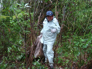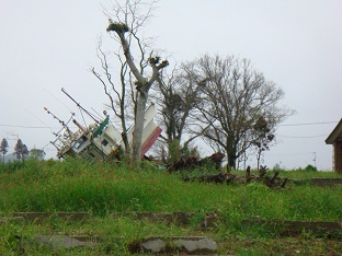 新地町でがれき拾い 南相馬の党ボランティアセンターから約30キロ離れた新地町にある一般家庭(農家)の裏藪のがれき撤去を、徳島、香川の7名で行いました。雨でしたが、気温が低かったため、雨具を着て作業できました。 このお宅は、前は海、後ろは小さな用水が流れる田園地帯です。 海側は小高い丘陵になっているので、海からの津波では被害が少なかったそうですが、裏側の用水から津波に襲われ、床上浸水したそうです。 大きな柱や壁などの瓦礫が流れて来た割りに、家が傷まなかったのは、用水側の竹やぶのおかげだそうです。 竹やぶの中に、どこかの家屋がこっぱみじんになったのでしょう。太い柱類、ベッド、ふとんなどの日用品やゴミ類がいっぱい引っかかっていました。 ![]() 重いごみを拾い出す井坂市議 わたしたちは、それらのがれきを一つ一つ取り除いていきました。 藪をかきわけながらの作業、しかもごみが重いので、大変でした。 田んぼのがれきは、自衛隊などが撤去してありましたが、各家庭の屋敷まわりは自分で取り除いているそうです。しかし、あまりに大きなゴミですから、高齢者には無理だと思います。行政もそこまで余力がないでしょうから、今後もボランティアの力に頼らざるをえないのではないかと思います。 溝の泥出し、雑草除去など、今後も仕事はいっぱいあると思います。 昼過ぎまでかかって、軽トラ4杯のがれきを集め、ごみ集積場に運びました。 ![]() あとは町の収集車が来て運ぶそうです。 被災地のあちこちで、大きながれきの山ができており、木類、鉄類、タイヤ、コンクリートなどに分類していました。 放射能汚染が心配されている地区での膨大ながれきの山は今後どうするのでしょうか。 首相は福島県内に保管場所を作りたい作りたいとか。 全く、どうしようもない事態です。 帰り道、新地町の井上町議の案内で新地町、相馬市の海岸線の被災地を見てまわりました。 行けどもいけども、こっぱみじんの被災地… ![]() 今も田んぼに船が ![]() 相馬市の海岸線で。おおきな町があったそうです。 |
