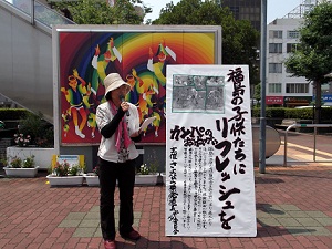 福島の子どもたちにリフレッシュを ![]() 「さよなら原発徳島実行委員会」は、明日から福島の子どもたちを徳島に招きます。 今日は徳島駅前で、カンパの訴えをしました。 この暑い夏も長袖やマスク、外遊びが出来ないと聞きます。これが自分の孫達だったら、どうしただろうかと思ってしまいます。 徳島の空気、水、土、緑の中で思い切り遊んで、リフレッシュしてもらいたいです。 この招待費用にあてるカンパのお願いをしています。下記HPをごらんの上、ご協力をお願いします。 「福島の子どもたちにリフレッシュを」のページ いつもおばかな私ですが、明日の集合時間と間違えて遅れてしまい、申し訳なかったです。 |