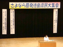 毎日暑いです。じっとしていても汗。 さすがにここ数日、体にこたえています。 皆様、くれぐれも御身体大切になさってくださいね。 子ども太鼓クラブ元気に活動 暑い夏ですが、子ども太鼓の出番の季節。 夏休み中は、ほぼ毎週、どこかに出演しています。 ![]() そごう前で国文祭「和太鼓のつどい」Don DokoウェルかめをPR すだちくんも出動。いつも人気 子供たちは元気に練習して、いろんなイベントや、高齢者福祉施設の訪問などがんばっています。 どこかの催しで見かけたら立ち止まって応援してください。 あなん子ども太鼓クラブが「あっ!わぁ発見伝」のページで紹介されました。 さよなら原発集会に650人 22日に行われた集会には、約650人が参加しました。 福島県から実家がある愛媛県に避難している澤上幸子さんのお話。 東京電力を刑事告発しているルポライターの明石昇二郎さんの講演。 原子力資料情報室共同代表の伴英幸さんの講演。 と盛りだくさんでした。 澤上さんは、原発のすぐ近く、二葉町で仕事をしていたそうですが、原発の水素爆発事故当時の「空から白い断熱材の破片のようなものがぱらぱら降ってきた」「その後の放射線測定では計器の針が振り切れるほどだった。」「着ていた衣類はすべて廃棄した。」「防護服が足りず雨合羽で避難した。」「お年寄りたちはバスタオルをかぶっただけだった。」など、その近所にいなければわからない貴重なお話を聞くことができました。 再稼動を止めさせ、再生可能なエネルギーを増やしていくよう、国が方向転換するまで、声を出し続けなければと思います。 省エネでは、一軒一軒の努力が集まれば大きな効果になると、私もがんばって、昼間の電力需要ピーク時でも、ダラダラ汗をかきながら、冷房入れずにがんばっています。排出水分量の割りに痩せませんが。 |