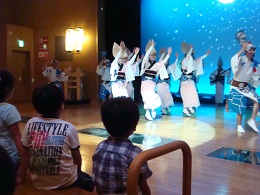 ようこそ徳島へ 福島のみなさん 「さよなら原発徳島実行委員会」が招いた福島の子どもたちと保護者の方々27名が徳島に到着しました。 初日から、阿波踊り会館で歓迎式、阿波踊りの見学、眉山ロープウエイ、夕食会と、盛りだくさんの日程でした。小さい子どもさんが多かったですが、徳島の暑さに負けず元気いっぱいでした。 阿波踊り見学と体験 現在徳島で活動している福島出身のフォークディオ「ヒルストーン」さんの歌 お母さんたちから、放射線を心配して、外遊びも思うようにさせてやれないこと、給食では地元の食材が使われていて、大丈夫と言われても心配してしまうことなど、毎日の苦労が語られました。 毎日、目に見えない放射線の心配をし、普通の生活が奪われているようすを直に聞き、あらためて、「安全だ安全だ」と言っていながら、どうしようもなく危険な状態を作り出してきた、原子力発電を推進してきた勢力に怒りが沸いてきました。 子供たちは、夕食会場でも、おもいっきり、はしゃいで、駆けて、笑顔いっぱいでした。 徳島の安全な空気の中で、せめて一週間、楽しく過ごしてリフレッシュしていただきたいです。 子どもさんたちの歓声を聞くにつけ、日本中の原発を廃炉にするため、がんばっていかなければと思いました。 ふくしまと とくしまの名重ねれば ちがいはひとつ こころはひとつ とくしまは 食も空気もだいじょうぶ はしってはしゃいで ふくしまの子ら 吉野川 みおろす眉山のロープウエイ 笑顔で手を振る ふくしまの子ら |