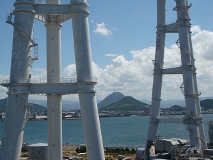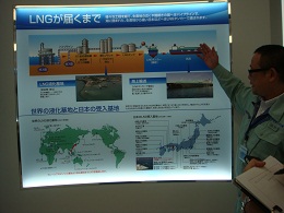電力関連視察で坂出へ 伊方原発が停止している今、私たち日本共産党県議団は、原発を再稼動させずに、安定した電力供給がおこなえる道はどうあるべきか、初歩から学んでいるところです。 今日は、坂出LNG基地と四国電力坂出発電所を見学させていただきました。 坂出LNG基地 出資者と出資比率は、四国電力鰍V0%、コスモ石油鰍Q0%、四国ガス鰍P0%。 LNGの受け入れ、貯蔵、気化、払出し等の事業を行っており、平成16年6月に会社設立、平成22年3月から営業運転を開始。 液化天然ガス(LNG)と石炭を比べてみると、 石炭を100とすると、天然ガスは、硫黄酸化物0、窒素酸化物20〜37、二酸化炭素57というように、クリーンエネルギーだということです。 LNGは、マレーシアから約1週間かけて運ばれてくるそうです。 基地の中央制御室 受け入れ桟橋 奥は瀬戸大橋 タンクは大きくて画面に入りきりませんでした。 LNGタンクの防災設備や体制についても説明していただきました。 坂出発電所 四国の電力の安定供給に大きな役割を担っている火力発電所で、発電機出力は1〜4号機で144万6千kW。発電燃料に、石油、コークス炉ガスを使用。平成22年からはLNGを新たに導入し、多種類の燃料を組み合わせて発電しています。 1〜4号機まで集中制御 タービン・発電機 隣接工場からコークス炉ガスが供給されています。 発電機建屋を上から見る 大きな集合煙突。向こうに小さく讃岐富士 よりクリーンなエネルギーで、安定した電力供給をと、企業努力されているようすがわかりました。 もう今では、原発を「クリーンエネルギー」とか呼ぶ人はいないと思います。今日見学させていただいたような方向での、多様なクリーンエネルギーの方向性を学んでいきたいと思います。 どちらも、大変熱心に説明をいただきました。ありがとうございました。 さて、今日は本当に残暑厳しく、汗だくの一日でした。 本日の四国の電力使用ピークは、午後2時台492万kW、ピーク時供給力571万kWで、「安定した需給状況」でした。 |