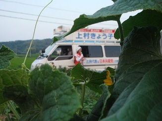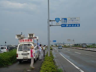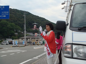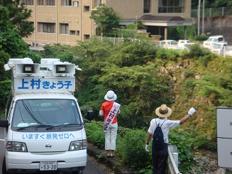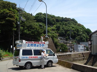 午後から、上村きょう子候補者カーに乗り、県南部をまわりました。