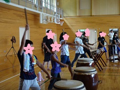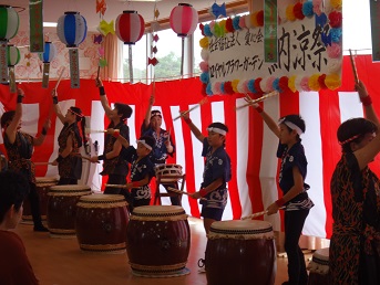 高齢者福祉施設で太鼓