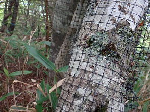 対策の効果がはっきりと表れています。登山道沿いに、どこまでも網などのシカよけ対策がされていました。しかし、全山網を張りめぐらすことができるのでしょうか?