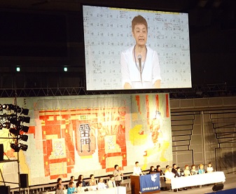 全大会は7500人の参加で、会場いっぱい埋め尽くされました。