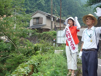 上村候補の訴えが、有権者の共感を呼んでいるのだなあと思います。選挙期間17日は長いようで短い。時間的に余裕がなく、那賀町では、木沢や北川には行くことができませんでした。