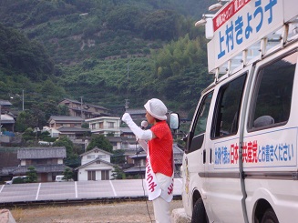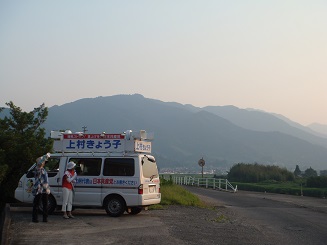 朝9時~夕6時までは、『「比例カー」で、阿南、那賀町を回りました。