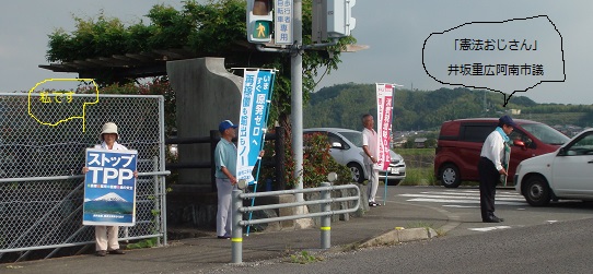 演説を聞いてくださった「戦時」を体験した高齢者の方は、「平和憲法を変えたらいかん」と、目に涙をうかべて「がんばってよ」と激励してくださいました。本当にここががんばりどき、と勇気をいただいた一日でした。