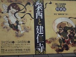 日本美術で元気をもらう 微熱などでだるい日が続いてしまいましたが、気分転換に美術館・博物館めぐりをしてきました。 今、東博では、キトラ古墳壁画の特別展が行われていて、連日押すな押すなの人波ですが、私の目的は、それではなく、最近発見された北川歌麿の「深川の雪」と東京国立博物館での「栄西と建仁寺展」や通常展示の日本美術の歴史を見ることでした。 一日中、日本の巨匠たちの作品に囲まれて、静かな時を過ごしました。 私は、美術のこととか、お茶やお花も全くわからないし、芸術作品に囲まれるような生活とは全く無縁なのですが、なぜか、きれいなもの、すてきな作品に囲まれるのは好きなのです。 特に、建仁寺展での俵谷宗達と、本館展示の尾形光琳の「風神・雷神図」に元気をもらったような気がします。 |