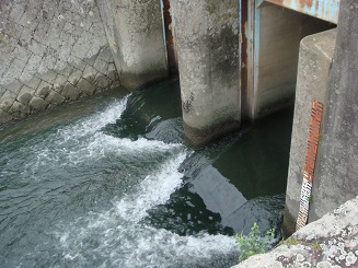 渇水対策などでご意見伺う 地元の土地改良区役員さんや、農家の方に渇水対策についてご意見を伺いました。 ダムの貯水量がなくなり、農業用水50%カットか、という時に恵みの雨となり、制限は緩和されたものの、まだ十分な雨量ではないようです。 ●「今日は早朝から一斉に田に水を引いているが、制限時でも余り水が水門から放流されている。水の有効利用が出来ないか。」 余り水を放流している川原水門●「農業用水が渇水で不足するのは、毎年ではないが、3、4年に一度はある。長期間ではないので、応急対策を用意しておくとよい。」 ●「生物多様性が言われ、自然環境を守ることが大事なので、川にはある程度の流量を確保しなければならないと思う。」 ●「水の節約になると思うので、パイプライン化を望んでいる。」 ●「農業の後継者がいなくなり、農業用取水施設にお金をかけても必要なくなるのでは?」 など、様々なご意見をいただきました。 また、「渇水対策会議を何回やっても、雨が降らないと意味がないから、雨乞いでもしたら?」というご意見も出ました。でも、本当に自然が相手ですから、笑うに笑えない提案でもあります。 阿南市宝田町井関地区のため池 |