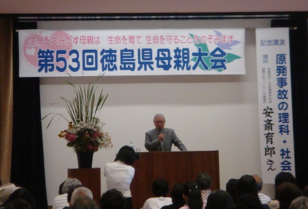 徳島県母親大会 午前中は分科会「親子で考える防災」に参加。 県防災センターから来ていただき、映像を使った防災講座を受けた後、参加者から地域や職場での問題点が出されました。 こんな講座を子どもたちとともに受け、啓発DVDも学校でしっかりと見せられるようにするべきとの意見が出ました。 午後は立命館大学名誉教授、工学博士 安斎育郎先生の講演「原発事故の理科・社会」でした。 福島原発事故は何をもたらしたか? 私たちはどうすべきか? など、わかりやすくお話されました。 東京大学工学部原子力工学科卒業で第一期生だそうです。同期15名のうち、ただひとり安斎先生は原発批判活動でがんばってこられたということです。楽しくお話されましたが、何年もアカデミック・ハラスメントに耐えた精神力に感服しました。 冷房病? 13日、本会議場で、手足の冷え、ふるえ、悪寒に襲われ、どうなることかと思いましたが、「常温」の控室でじっとしていると次第に回復してきました。肩こり、胃の不快感など次第に良くなってきました。食欲はあるので大丈夫ですが、なにしろ温度差が激しいので、体調が狂うようです。 冷房はかけず、冷たいものを避け、暖かいお茶、常温の飲み物にするなど、気を付けています。 |
