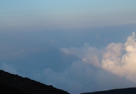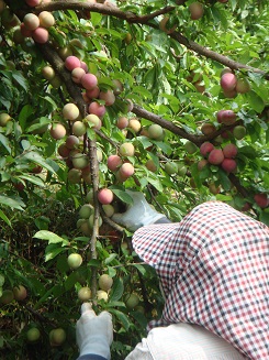富士山世界遺産に 登り途中、雲の間から見える南アルプス。富士吉田登山道 登り途中見えた影富士 表富士登山道 ふ〜じは に〜ぽんいちの〜やま〜♪ 世界遺産登録決定。おめでとうございます。 世界の山になりましたね。良かったです。富士山大好きおば(あ)さんの私もうれしいです。 実は、体力なし、訓練せずの「高齢者無謀富士登山」を行っております。 無謀に、登っていますので、息苦しいです。足も痛いです。何度ももうだめと思います。 歩みはカメより遅いです。でも、のろくても、歩み続ければ、必ず頂上につく! しかも、いつも、行く先(目標地点)が見えている、すぐ近くのように。でも遠い。 あえぎあえぎ、へろへろになってたどり着くのは、なんと日本一の地点。だからやめられないのかな… 今年は、特に、ありがたく登らせていただきます。 六根清浄! もも収穫 すももを収穫してきました。 収穫している84歳の母。 収穫に適しているのは、青くなく赤くなく、桃色でしょ! パックに詰めて「正直市」へ 赤く熟したのは、〇〇〇〇でしょ! やまももも熟れてきました。でも高い所にあるので、採れません。写真で撮りました。 首が痛くなるほど見上げて、今日は眺めただけでした。 カニの気持ちがわかります。 |